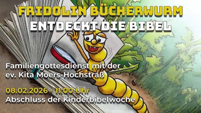 Bücherwurm Fridolin entdeckt die Bibel - Ein bunter Familiengottesdienst mit der evangelischen Kita Hochstrass